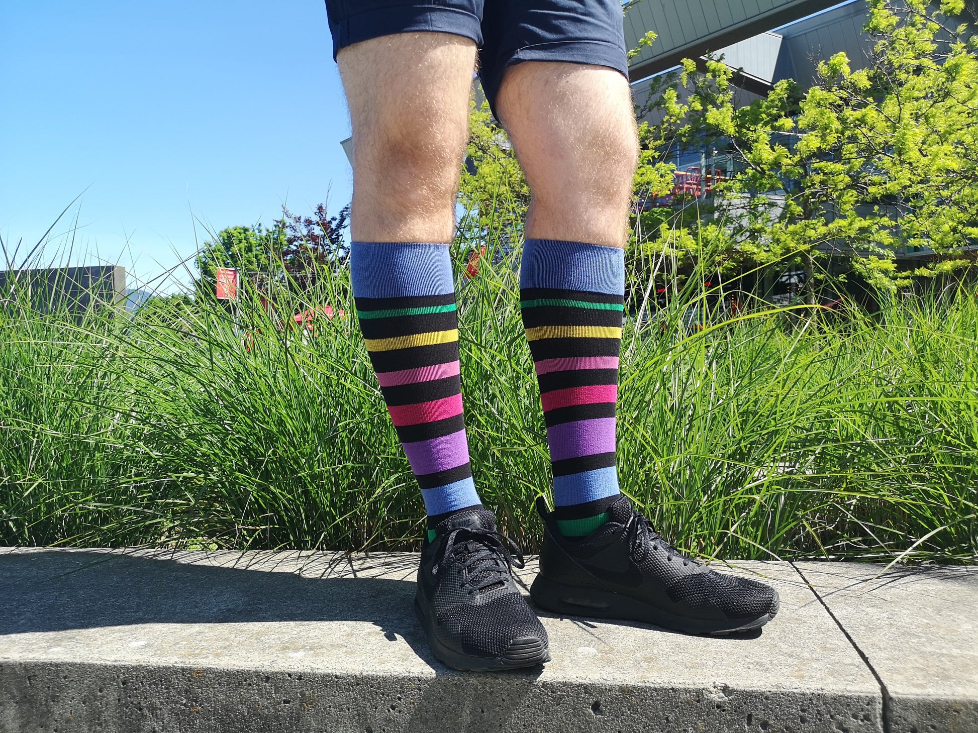• Over The Calf - Socks should sit approximately 2 finger-widths below the knee. The sock stays up without sagging or bunching.